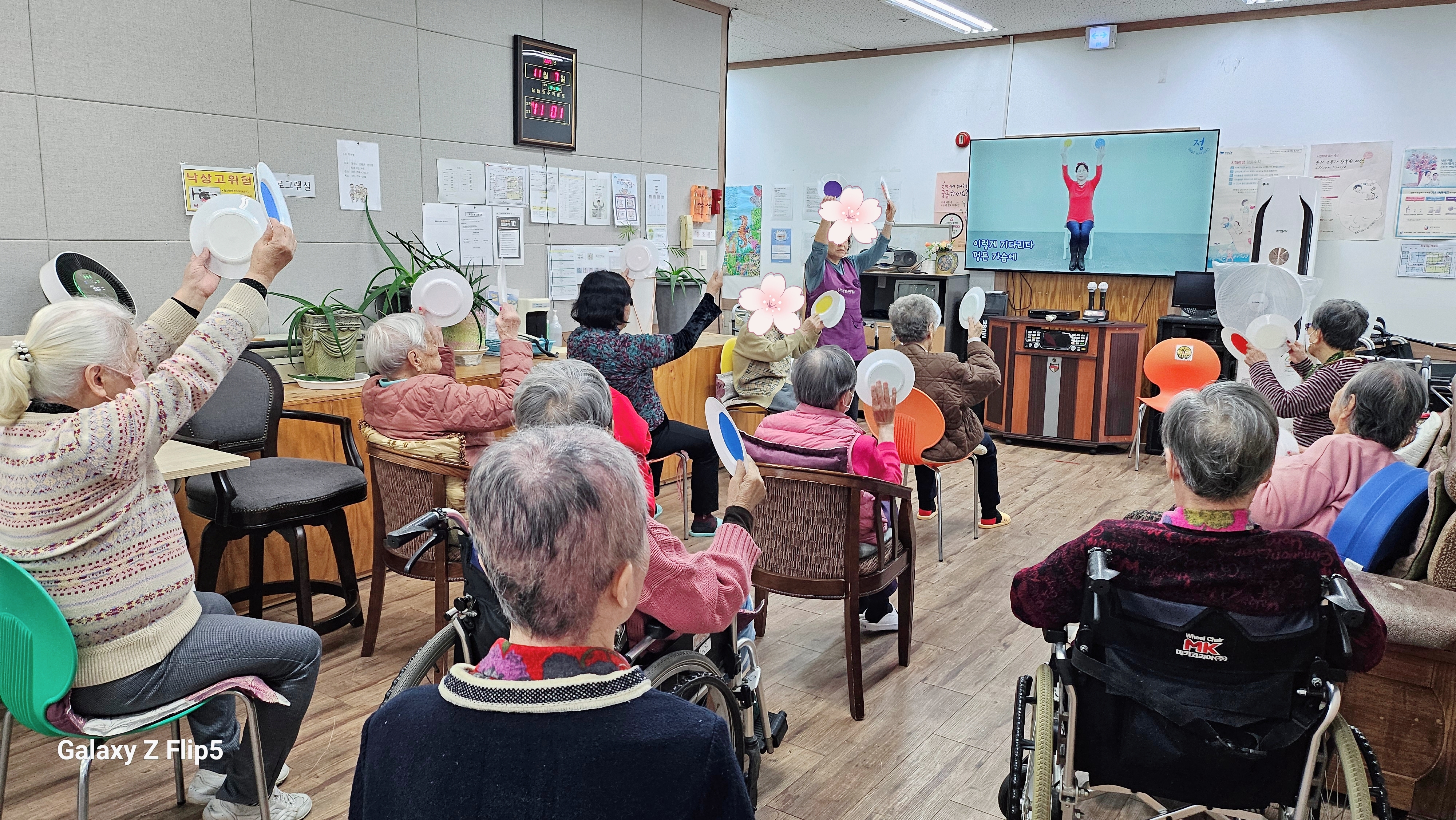 니나노~ 옛노래 가락에 맞추어 접시체조를 하시는 어르신 얼굴에 미소가 가득 ~^^