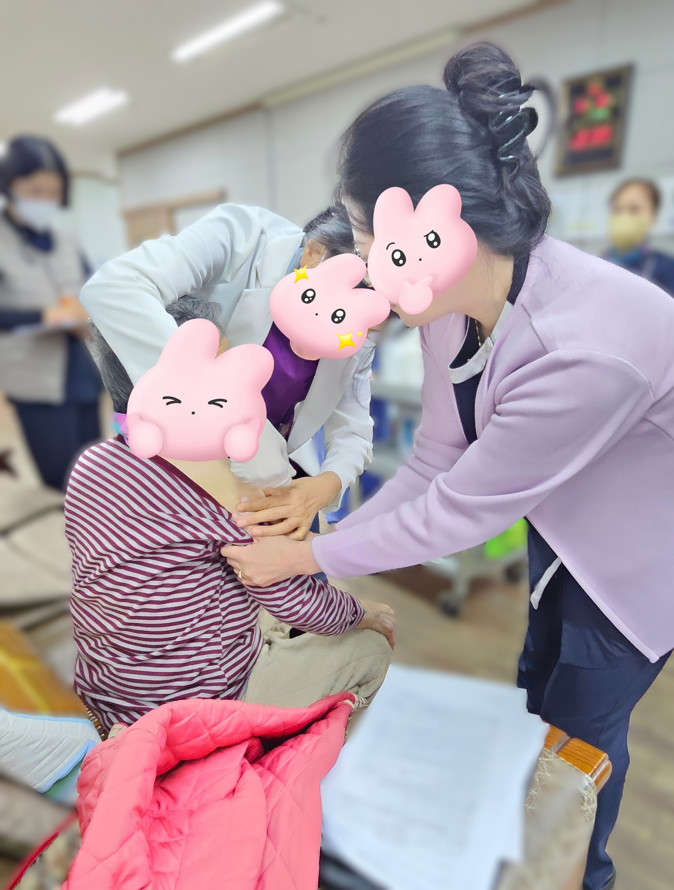 차가운 날씨에도 어르신들 모두 건강하셔서 감사합니다. 오늘은 코로나 예방접종을 받으셨네요.~^^~